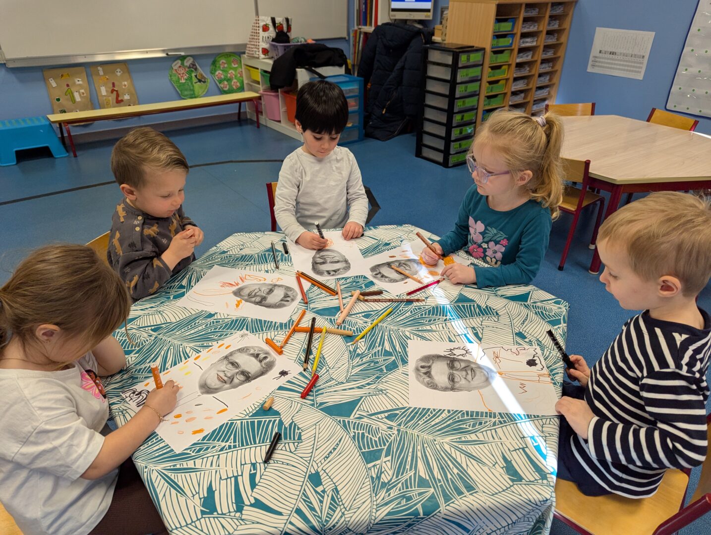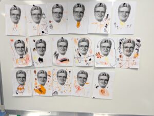 Nous allons réalisé tous ensemble le dessin du corps de Thérèse pour le mur de l’école.