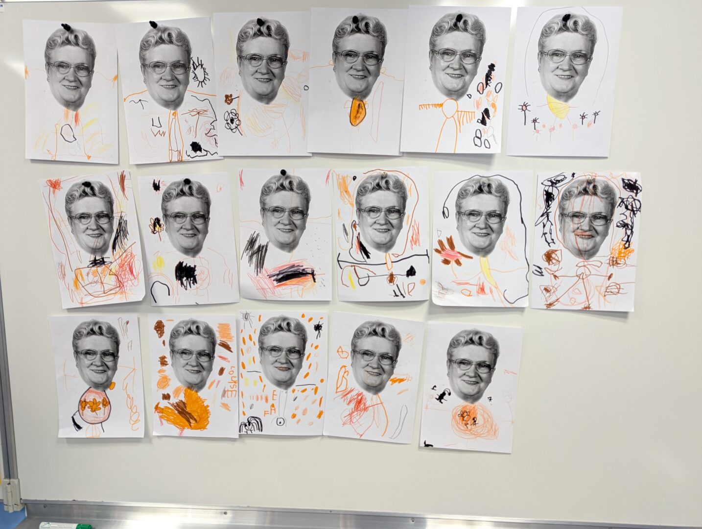 Elise est revenure dans notre classe. Nous avons dessiné un corps avec la tête de Thérèse.